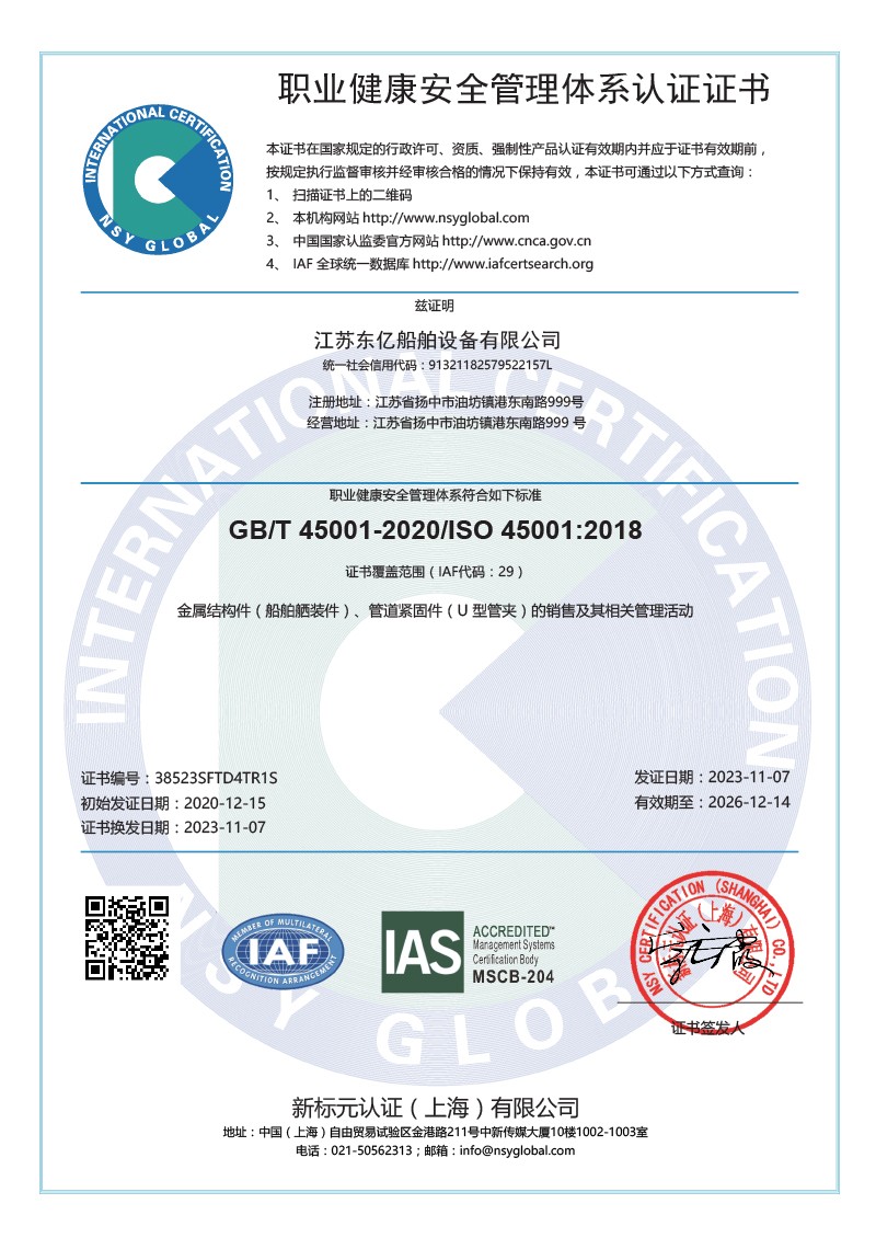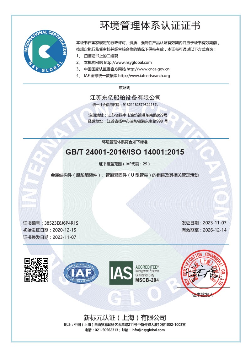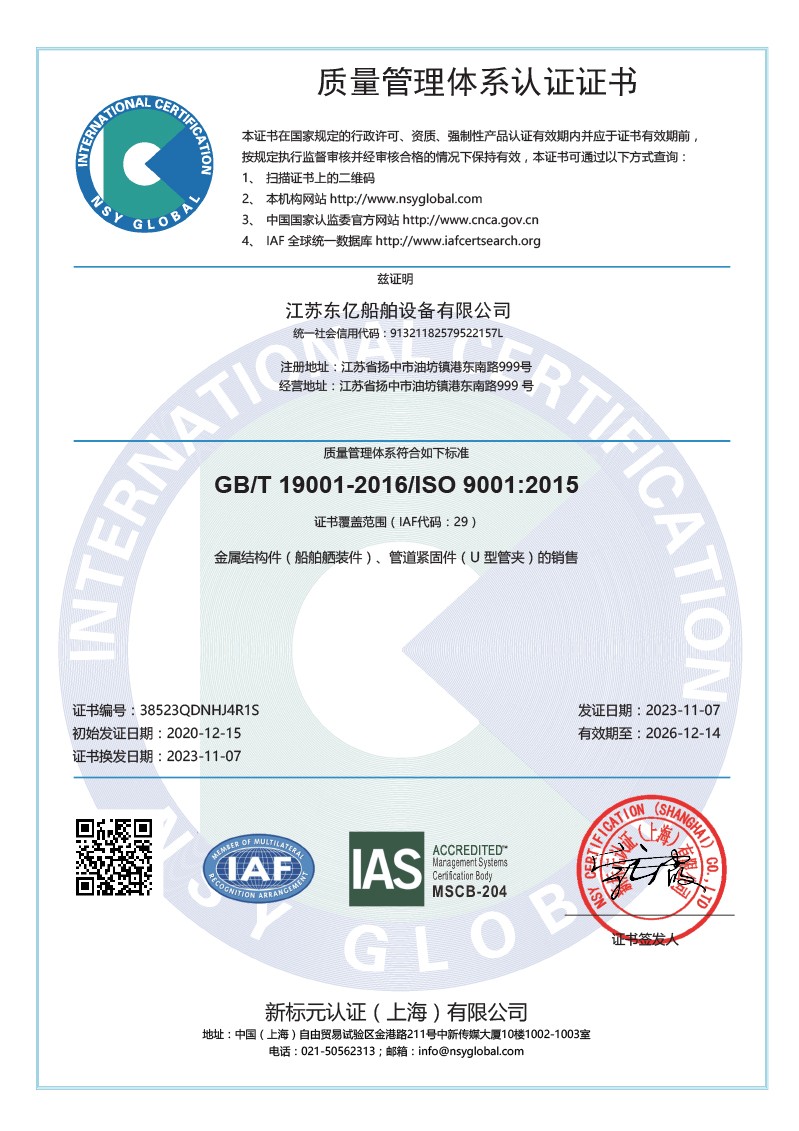 江苏东亿船舶设备有限公司是一家专注于生产销售船用塑料管夹、尼龙U型管夹、抱箍等产品的厂家。